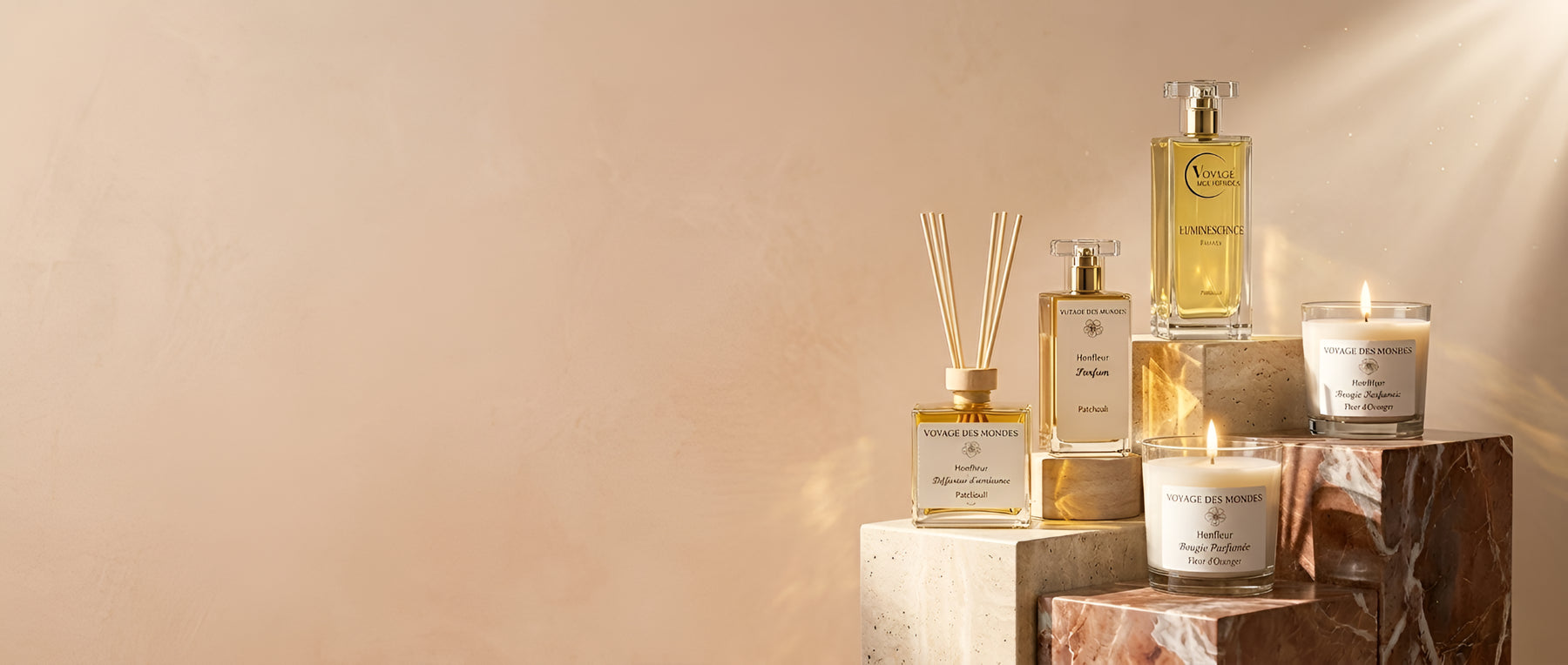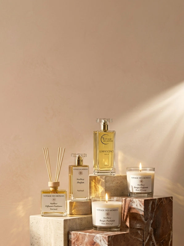 Voyage des Mondes naît du souffle de deux sœurs jumelles. Entre l'enracinement profond du Patchouli et l'envol solaire de la Fleur d'Oranger, nos créations célèbrent cet équilibre sacré. Deux essences, deux chemins, une seule lumière.