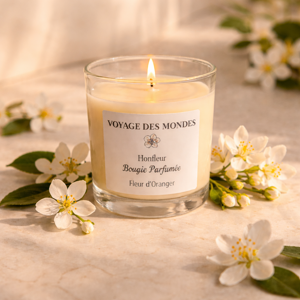 Offrez-vous un moment de calme avec la bougie Fleur d’Oranger, un véritable rituel de bien-être.
